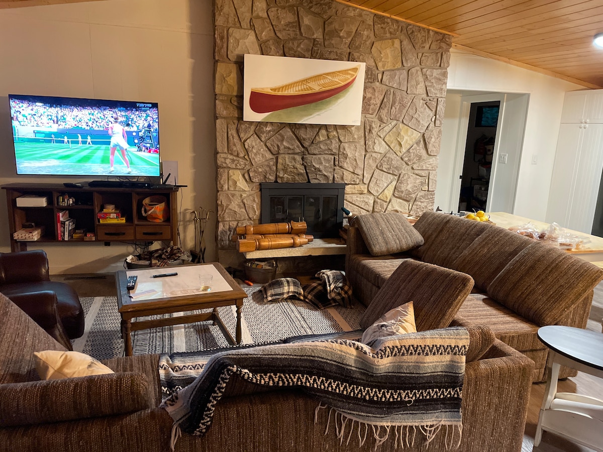 Oppusset hytte med fire soverom og 2,5 bad ved innsjøen er en perfekt ferie for hele familien til den vakre Morin Lake Regional Park. Den koselige hytta vår har plass til ti personer (maks seks voksne) og ble designet med familier i tankene. Fra kino-rommet, barneområdet, lesekroken og innsjøen er det bare noen få skritt. Grill på terrassen foran, kos deg ved peisen eller sitt på balkongen og bare nyt utsikten. Vi ligger rett ved siden av hovedstranden og bare noen skritt unna lekeplassen.
