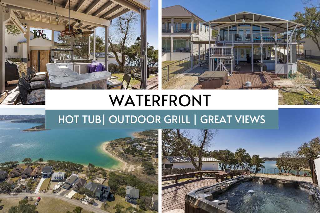 Slapp av og glem alle bekymringene dine! Dette stilige og romantiske skjulestedet med utsikt over innsjøen er det perfekte stedet å fornye, lade opp og nyte perfekt utsikt. Denne unike hytta tilbyr et spa-rom, rikelig med terrassedekk, koselig loungeområde med bålplass, utendørs spisestue, utedusj, grill, TV og spillområde. Eiendommen ligger praktisk til to minutter fra innsjøen og båtrampe nr. 1. Fem minutter fra restauranter, antikvitetsbutikker, ti minutter fra den lokale vingården, 20 minutter fra den sjarmerende byen Gruene og New Braunfels.