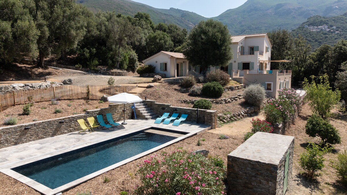 Saint Florent 10 personer, basseng og flott utsikt over havet