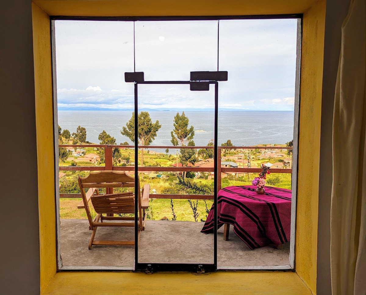 HABITACION con excelente vista panorámica al Lago Titikaka, para una estadía inolvidable, contamos con lugares de relajación y aventura para aislar del estrés y del bullicio de la ciudad además del aire libre, en la estadía contamos con vehículos y botes a motor para nuestro traslado hasta la isla flotante, además para la alimentación tendremos con productos alto andinos orgánicos, para completar la estadía tendremos city tour a toda la comunidad de lso uros y paseos en kayaks.