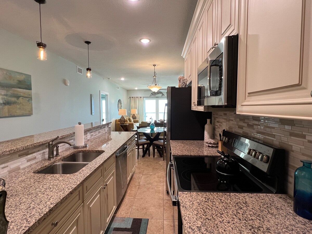 Fantastisk leilighet med tre soverom/tre bad og to xl køyesenger over gaten fra stranden. Ett minutts spasertur til stranden! Har 2 overbygde balkonger, 1 utenfor LR og 1 privat balkong utenfor hovedsoverommet. Sitt utenfor regn eller solskinn! Et stort spisebord for å spise eller leke med bar for ekstra sitteplasser (eller satt opp som arbeidsplass). Tilgjengelig - 4 strandstoler, telt, strandleker. Ingen strandhåndklær følger med. Har felles basseng og boblebad. Aldersgrense er 25 år.