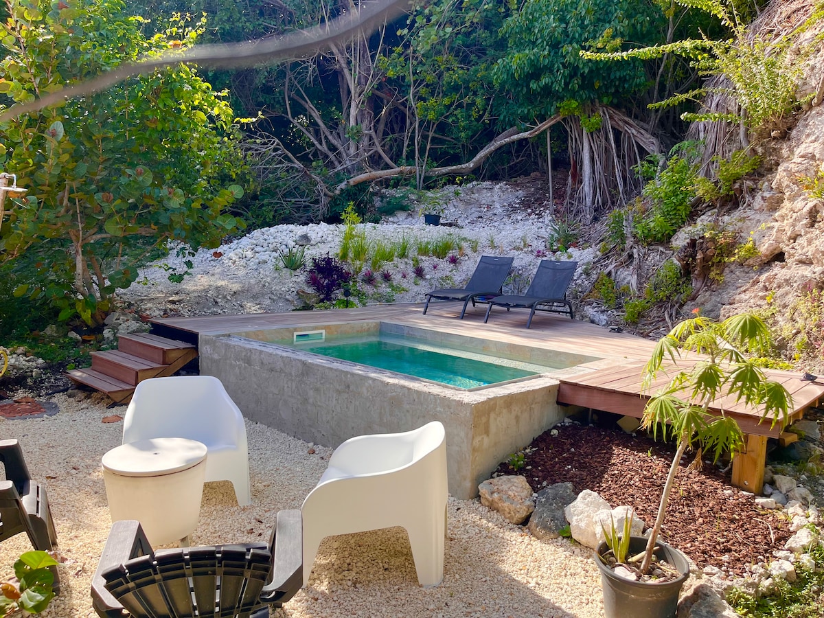 TI'KAZ Cannelle er en bungalow i kreolsk stil i tre og tropiske farger som kan huse et par med et barn. Utenfor er det en romslig treterrasse som kombinerer en spiseplass, en komfortabel stue og en hengekøye med utsikt over det private bassenget og hagen med unike essenser: banan, papaya, hibiscus ... Avslapning og forandring garantert!