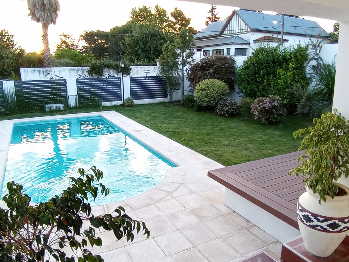 Komplett familiehus. To integrerte sektorer for eksklusiv bruk av hver reservasjon. Den ene har ett soverom (med eget bad), skrivebord, kjøkken og grillplass med grill, kokeplate og jernovn. Den andre har to soverom, bad, kjøkken og en romslig stue. Det er internett, smart-TV, kabel-TV, wifi, AA, takvifter, gassvarmere og vaskemaskin. Basseng, solarium, terrasse, gallerier og terrasser. Automatisert inngangsdør og port. Noen kvartaler fra sentrum av HG, og 4 km fra La Falda.