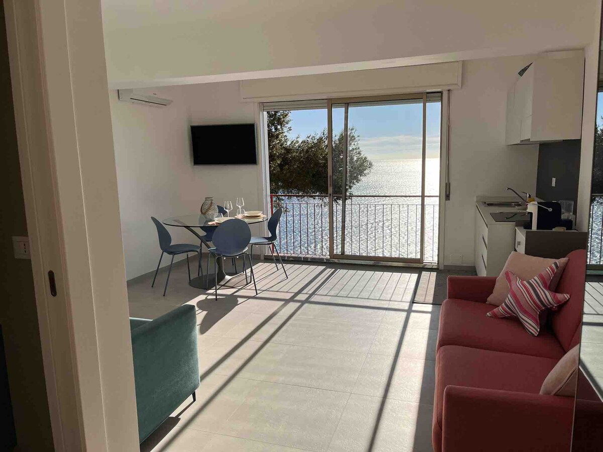 Herlig leilighet med utsikt over havet med privat hage, 5 minutters gange til stranden. Perfekt sinnsro til alle tider på året. Et parfymert hjørne som fylles med poesi. Fullt utstyrt med tjenester og utstyr. Selvkontroll -i gammel stil! Gratis parkering på gaten eller privat parkering mot betaling. Strategisk plan også for utflukter i det liguriske baklandet.