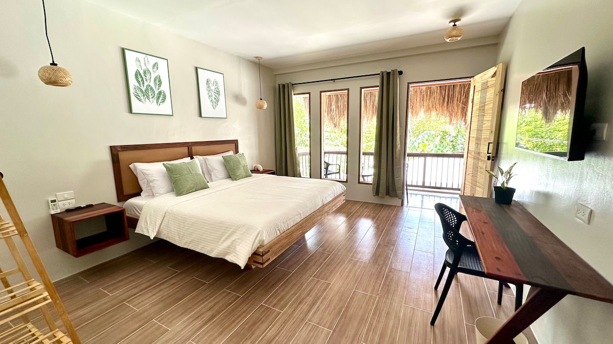 Gå inn i ditt eget private fristed – inne i hjertet av Padel & Palms padelklubb. Velkommen til The Padel Hideaway. Et koselig, stilig privat rom som føles mindre som en utleie og mer som ditt drømmeopphold. I hjertet av General Luna, Siargao. Dette er et roms romslig, privat rom med eget bad, et utendørs, privat avslapningsområde. Inkluderer fasiliteter som arbeidsplass, utendørs bambusdusj, kjøleskap, Starlink wifi, aircondition, rabattert padel og Bamboo Café og isbad som snart åpner.