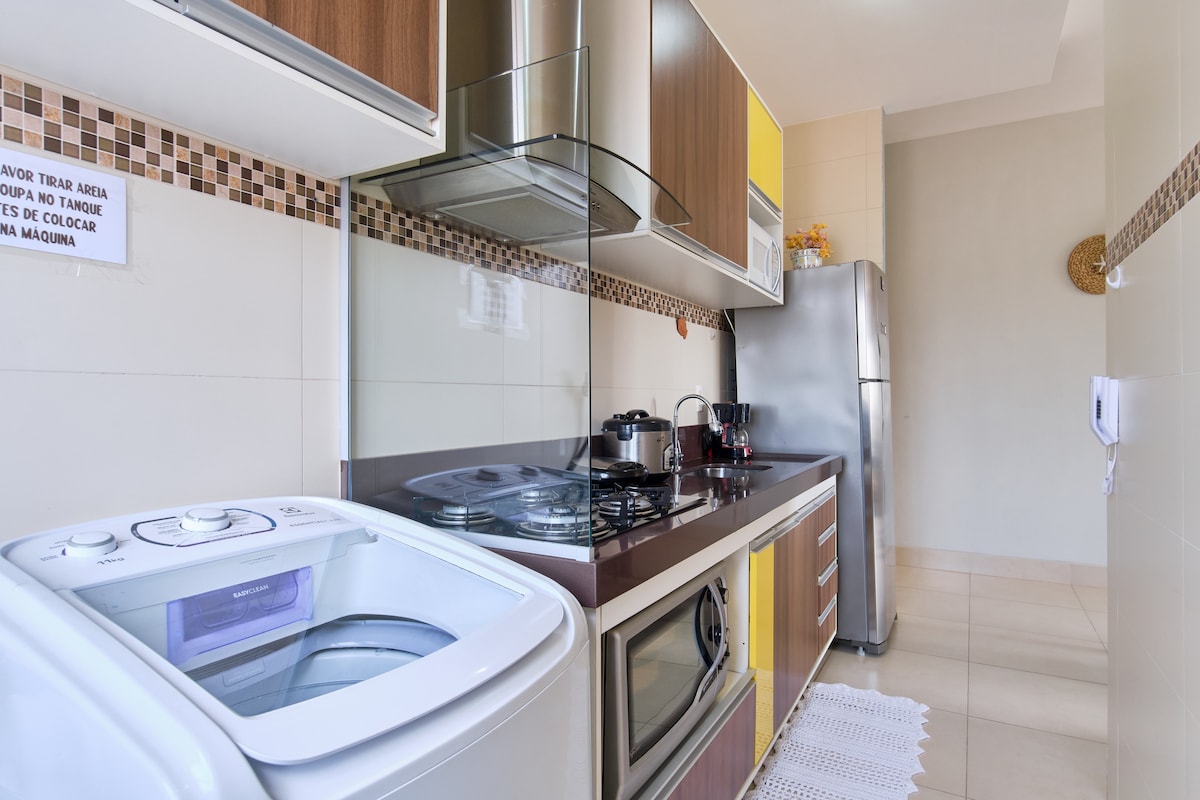 Vakker og komfortabel leilighet med utsikt over sjøen i Caraguatatuba, nordkysten av SP, et sted med fantastiske strender. Leilighet på 68 m2, med 2 soverom, 2 bad, stue for 2 miljøer (spisestue og stue), fullt utstyrt kjøkken, serviceområde, 1 garasje, rom for opptil 8 personer, fullt utstyrt fritidsområde, minisportbane, sykkelparkering, badstue, svømmebasseng, grillplass på taket, møterom med WI-FI. Familiebolig, bruk av narkotika er forbudt.