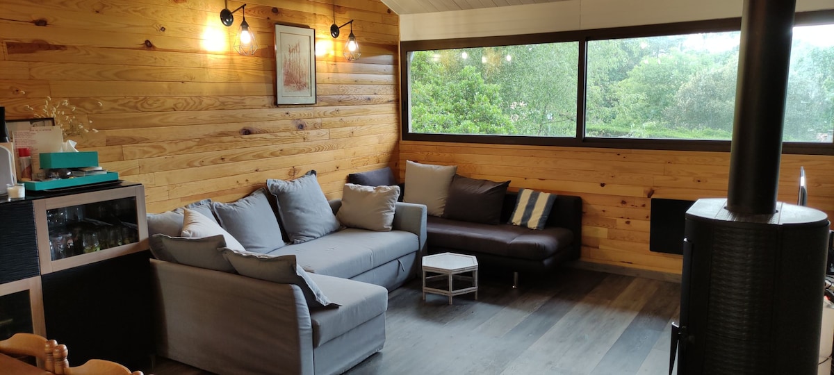 Vi er glade for å ønske deg velkommen til denne varme, komfortable og klimatiserte hytta. Du vil ha en uavhengig bolig på vår eiendom. Felles hage, men privat terrasse terrasse. I et rolig nabolag, noen minutters gange fra butikker og tjenester. Sykkelsti 200 m unna. Velutstyrt kjøkken for å tilberede gode måltider! Sengetøy, håndklær og badekåper følger med. Oppholdet ditt vil være forfriskende eller sportslig i et miljø mellom skog, innsjø og hav!