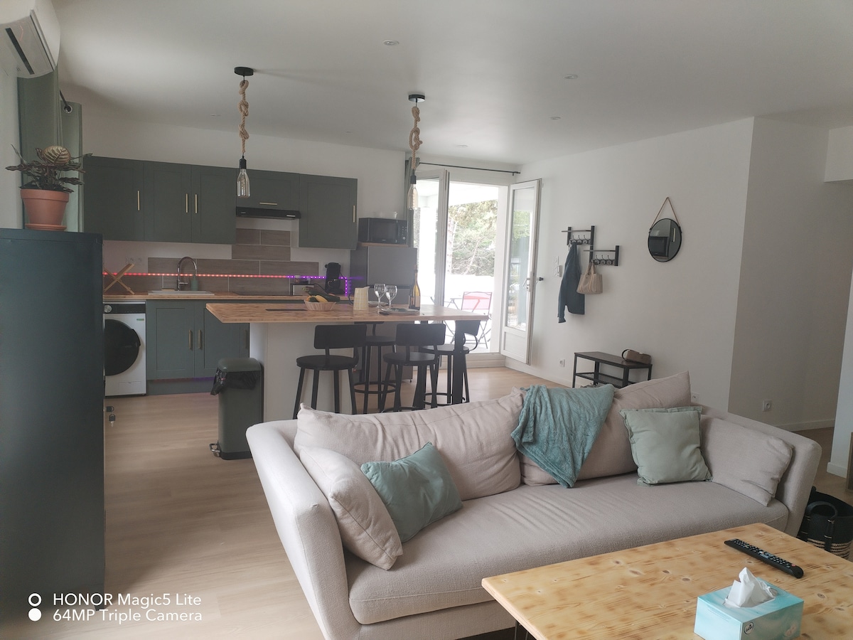 glem hverdagen og dykk ned i en ferieatmosfære uten å forlate Carcassonne. Den tropiske studioen er en ekte boble av eksotisme og ro, perfekt for en uforglemmelig utflukt. Hvert øyeblikk er en invitasjon til å slappe av: fra den grønne og fargerike innredningen, hvor din private jaccuzzi venter på deg i rolige omgivelser, garanterer studioet mitt deg fredelige netter og hvile, samtidig som du er i nærheten av Carcassonne. Gi deg selv denne reisen, den tropiske studioen venter på deg!
