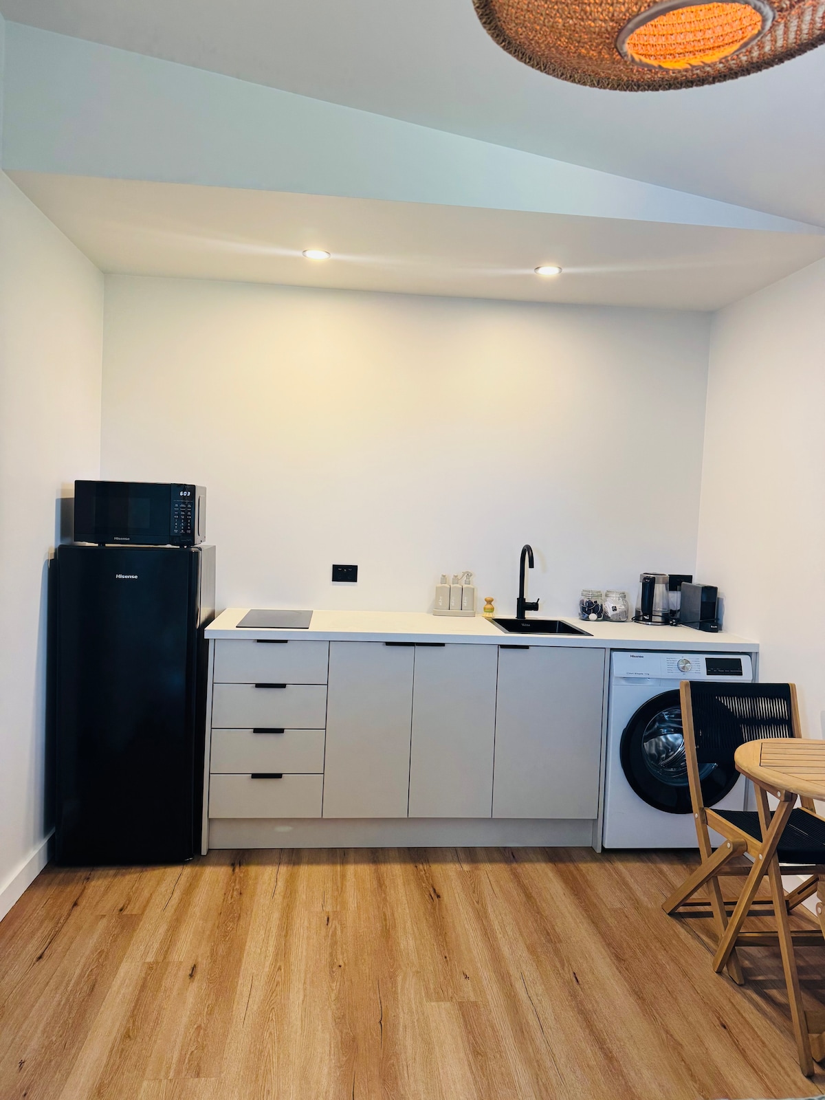 Ligger mellom stranden og innsjøen i enden av en rolig blindvei med en pittoresk laguneutsikt! Og bare noen meter unna tilgangen til den berømte nye Fernleigh Track! Dette fullt utstyrte, koselige huset med ett soverom er helt nytt og plettfritt rent! Fullt utstyrt med sengetøy, håndklær, såpe, sjampo, toalettpapir, Nespresso-kaffemaskin + kaffekapsler, vannkoker, pulverkaffe, teposer, sukker, brødrister, airfryer og alle nødvendigheter på kjøkkenet.