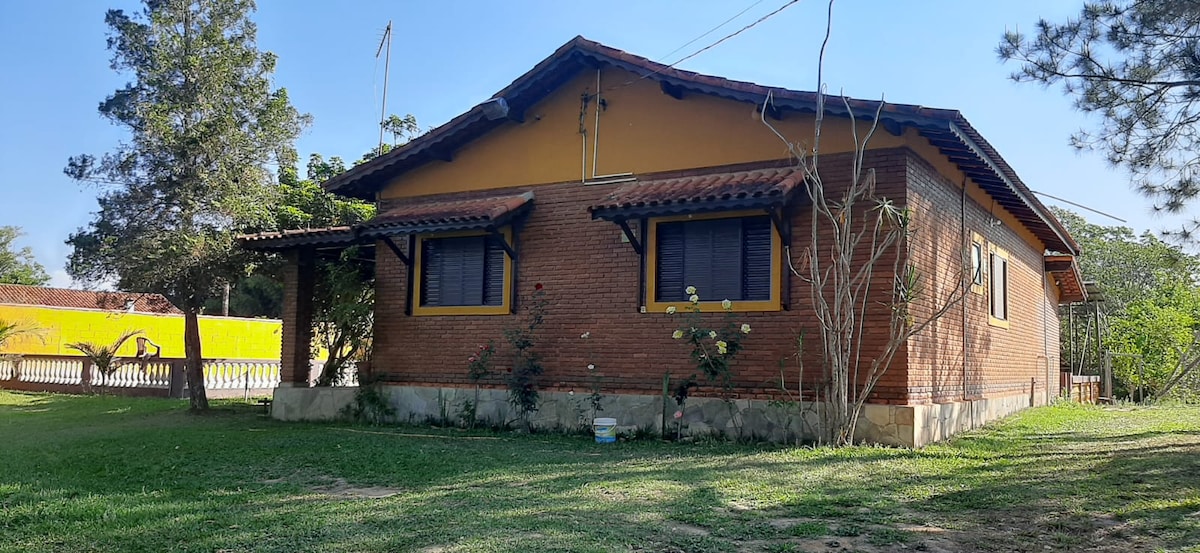 Velkommen til Recanto Alegria-ranchen! Ranchen vår tilbyr et sted med ro og hygge, slik at du kan komme i kontakt med naturen og ha spesielle og uforglemmelige øyeblikk. Stedet har et svømmebasseng, en komplett grill, en terrasse med vakker utsikt og en stor og romslig hage for å samle familie og venner. Beliggende i hjertet av nabolaget, i nærheten av bar-restauranten og et minimarked i nabolaget. Natur, komfort og fritid på ett sted!