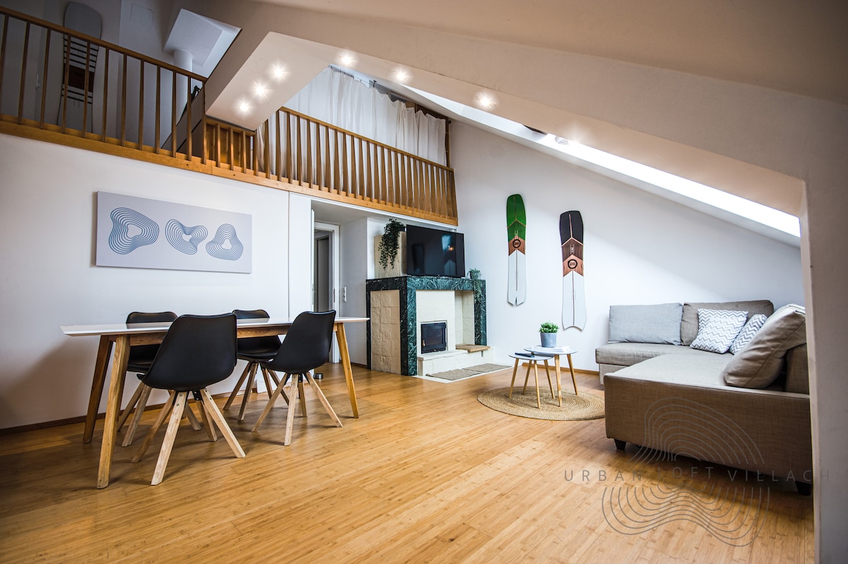 Superduper fantastisk 100 kvm romslig urbant loft som ligger direkte i Villach sentrum. Det blir ikke mer praktisk enn dette!! Ett kvartal fra hovedtoget/busstasjonen// Ligger rett over turistsenteret Villach// Rett ved siden av banken Østerrike // over gaten fra flere barer, kafeer og restauranter // En bro unna torget // 2 minutters gange til ukentlig bondemarked og dagligvarebutikk // sykkelutleie nede.