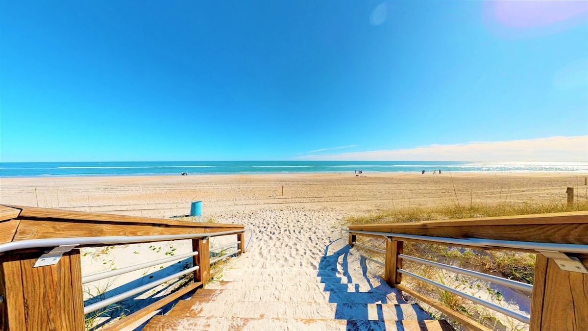 Første etasje (trapp)endeenhet, tregulv, benkeplater i granitt, apparater i rustfritt stål. Oceanview leilighet ligger ett kvartal fra stranden og en kort spasertur til tilgang. Soverommet har queen-seng, peis og eget bad. Stuen har en queen sovesofa med en geloverflate. Ekstra halvt bad. Vaskemaskin/tørketrommel i enheten. Kjøkken, trådløst nettverk og smart-TV, balkong og basseng. Rolig beliggenhet med gangavstand til CB Pier/Tiki Bar & Grill og Freeman Park. Sengetøy følger med. Totalt fire gjester.