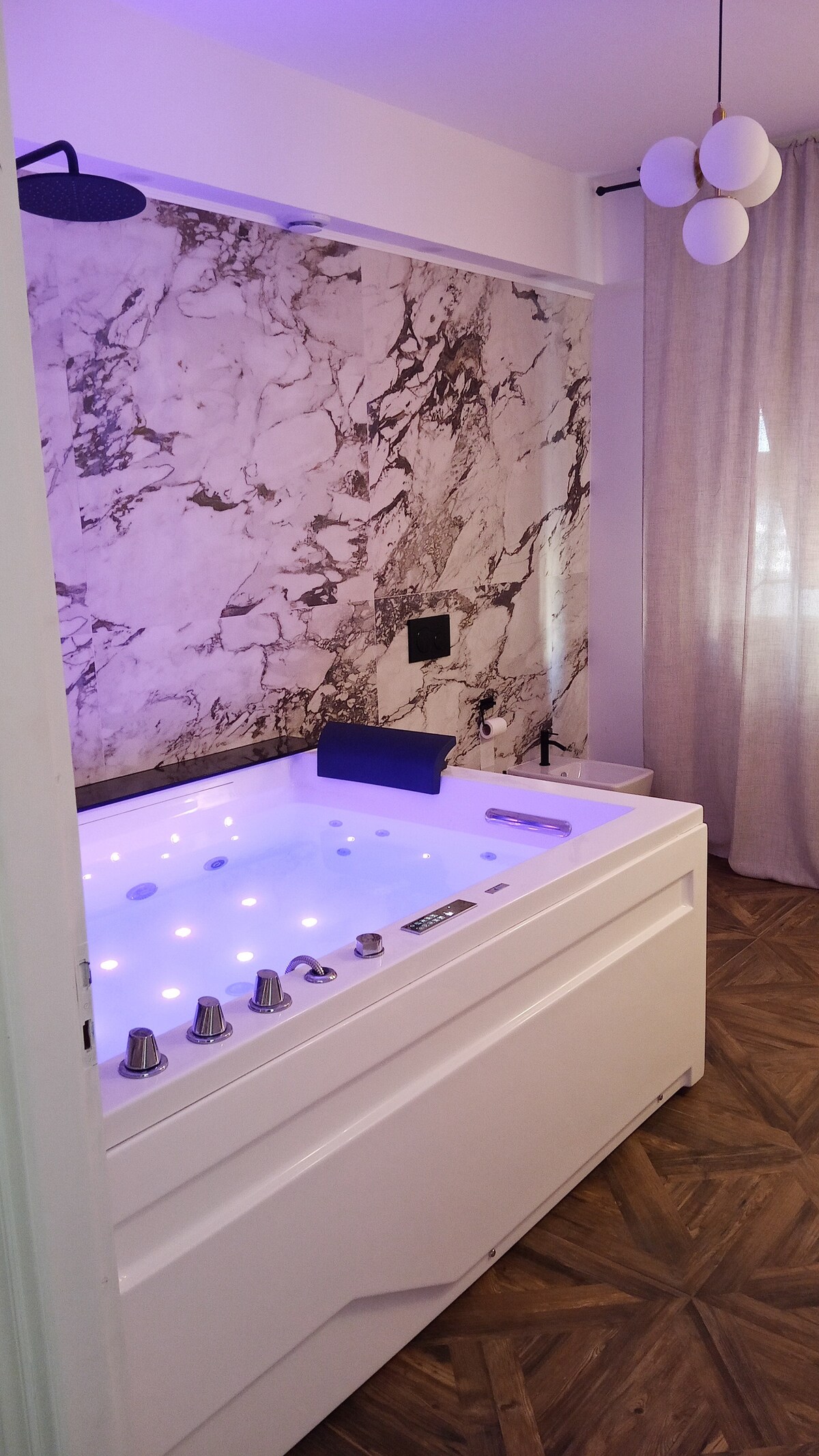 Velkommen til Sparkling Suite! Den luksuriøse suiten vår tilbyr et romslig soverom og et bad utstyrt med et praktfullt boblebad, perfekt for et totalt avslapningssted med elegante møbler og upåklagelig oppmerksomhet på detaljer. Overnattingsstedet vårt er ideelt for de som leter etter komfort og raffinement. Bestill nå og lev en uforglemmelig opplevelse i hjertet av landet.