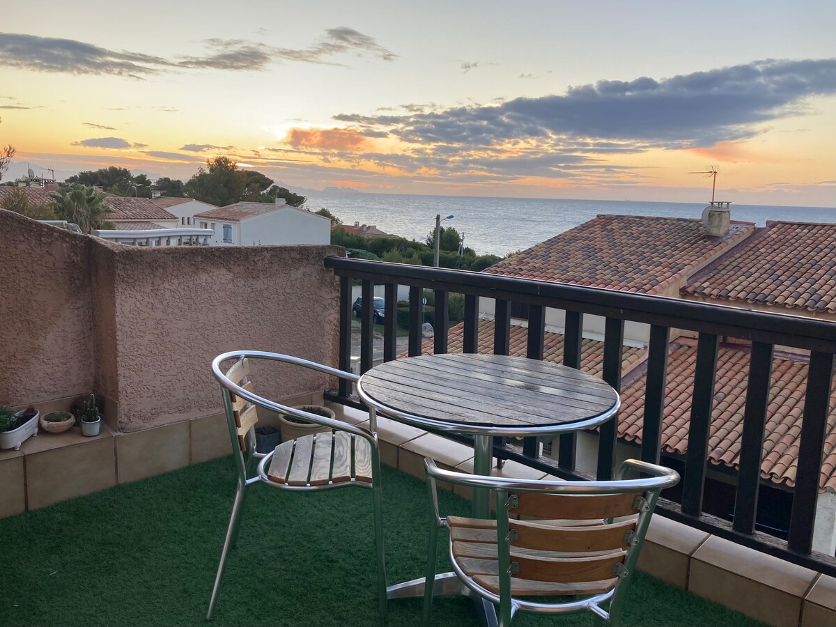 Fantastisk beliggenhet, duplex-leilighet med utsikt over havet, i andre og øverste etasje i et lite kollektiv, badet i lys med en fantastisk utsikt over havet og strendene i Sausset les pins På første nivå, åpent kjøkken i den store stuen. På andre etasje ligger soverommet, åpent med rekkverk En vakkerrasse med utsikt over havet. En invitasjon til latskap!