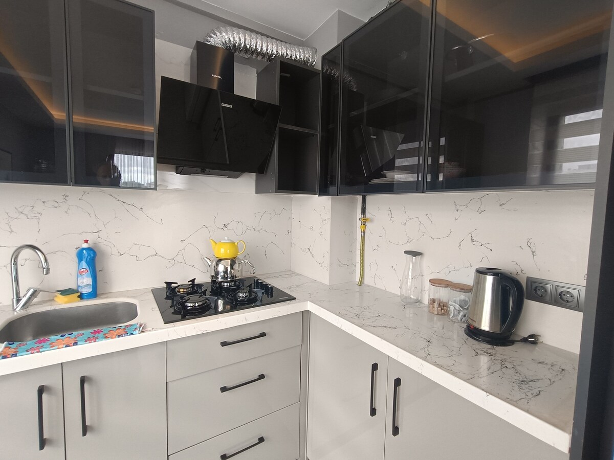 Ekstremt ren, ny leilighet, aktive abonnementer på plattformer som Netflix og Blu TV. Dekorerte feiringer kan forberedes for par. 100 meter til stranden og 50 meter til trikkeholdeplassen. - Nøye er i forkant. - Bygningen har 0 og heis. - Husverktøy og utstyr som skal brukes er tilgjengelige. – Trådløst nettverk er tilgjengelig, og Netflix, Youtube Premium, HBO, Exxen-abonnementer er aktive. - innsjekking kl. 07.00-24. For opphold på -10 dager eller mer har vi en ekstra gratis rengjøringstjeneste. - Ideelt for dem som ønsker seg et varmt og rent sted.