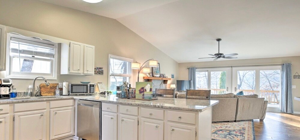 Minutes from downtown Woodstock, our 3 bedroom, 2 bath cottage has been totally updated so everything is new. Our open floor plan has a full kitchen, hi speed internet, convenient keyless entry, smart thermostat, laundry room and charming private patio area, makes for the perfect getaway. We also have a family game room with a foosball table, electronic soft tip dart board and its own 70” Ultra Hi Definition TV with 100+ channels. There is also a desk and office chair. Fully fenced back yard.