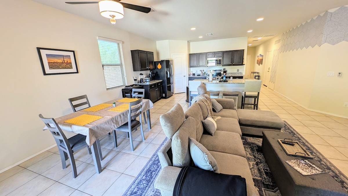 Escape the ordinary and dive into your own desert paradise! Enjoy a private pool, perfect for refreshing dips under the warm Arizona sun or the hot tub for the cool nights. When it's time to unwind, create delicious meals in the full kitchen or on the grill and enjoy them on the patio. Whether you're seeking a relaxing escape or an action-packed adventure, this home is your perfect base camp. For those working on the go, we also boast high speed internet and a dedicated workspace!