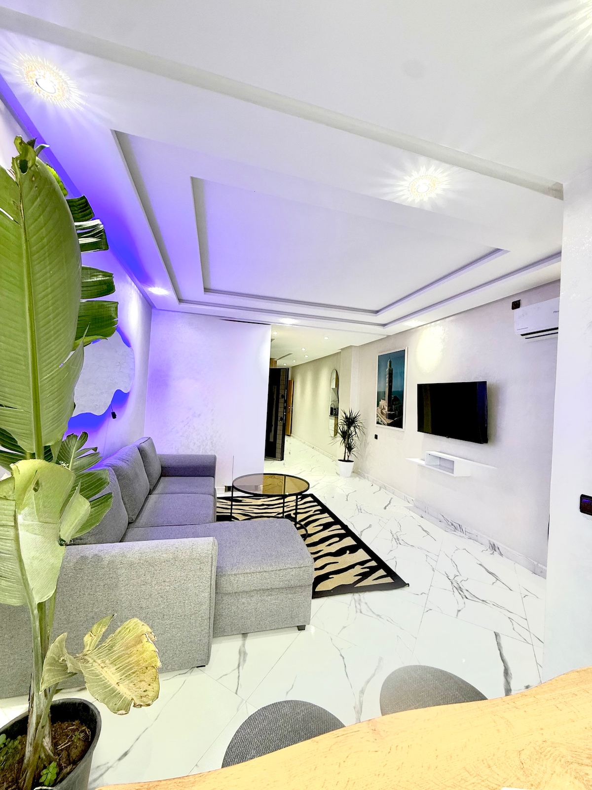 ✨ Nyt en unik opplevelse i hjertet av Casablanca! 🏙️🌟 Velkommen til denne vakre, moderne leiligheten 🏡 i det populære Burgundy-distriktet, i første etasje i en sikker bygning 🛗. Enten du er på jobbreise 💼 eller en byferie 🧳, tilbyr dette stilige hjemmet deg moderne, lyse og helt private omgivelser, utformet for å sikre komfort, ro og et hyggelig opphold. 💤✨