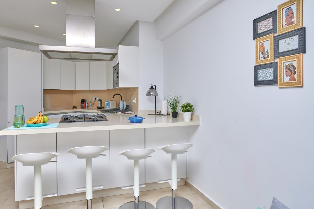 De komfortable møblene, innbydende planløsningen og de kombinerte fargene tilbyr en harmoni som kan sammenlignes med den som tilbys av de beste interiørdesignere. Pop Art-leiligheten blander modernitet med en følelse av "hjem". Komfortabelt som et koselig lite rede og dekorert av oss med smak. Om dagen lyser solstrålene opp stedet og inviterer deg til å varme deg opp på den lille terrassen.