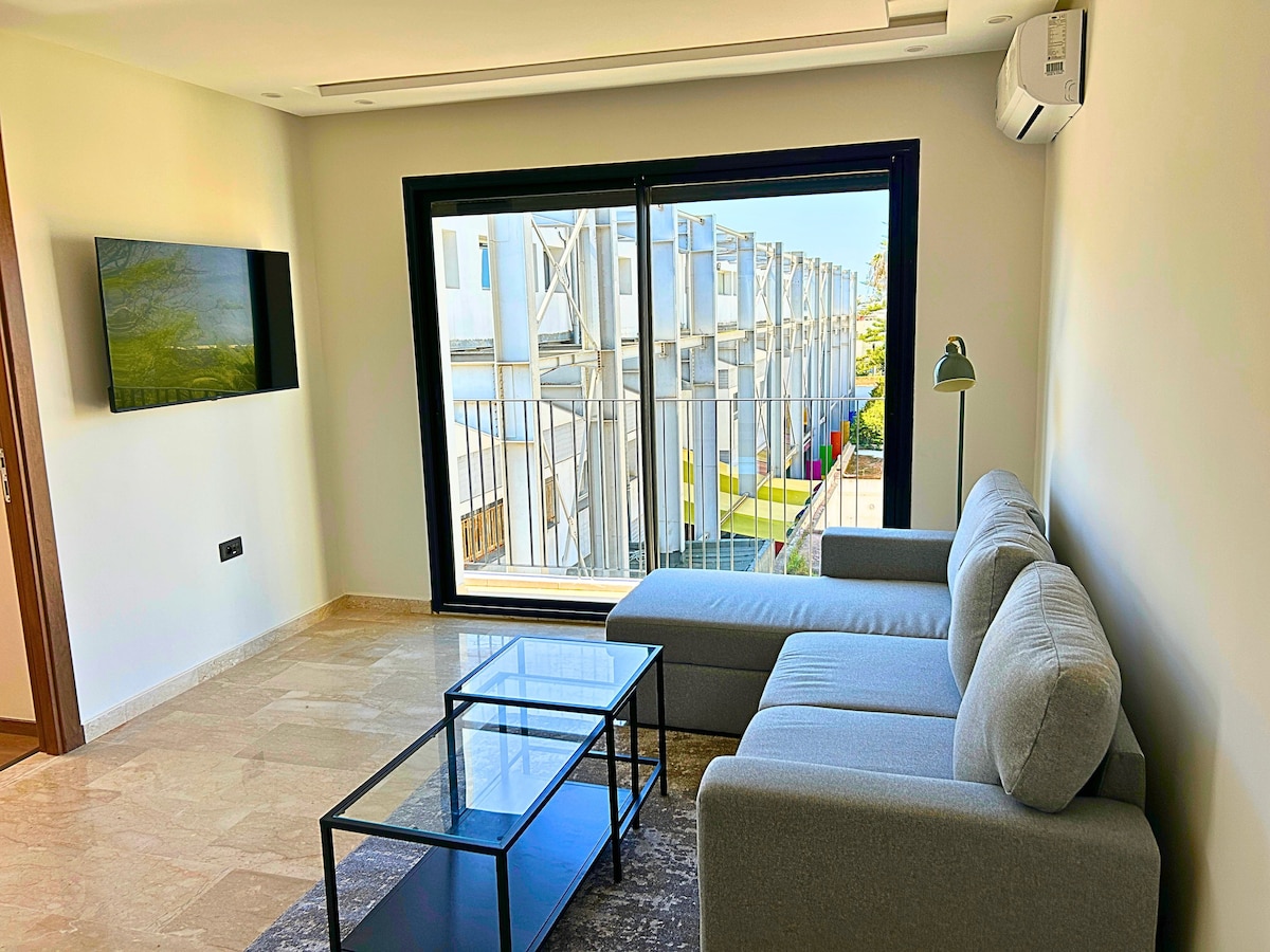 Perla 403💎, en oase av fred hvor elegansen til en moderne bolig kombineres med komforten til 5-stjerners hoteller i hjertet av Casablanca! Slapp av i en romslig stue med moderne design, utstyrt med en 55-tommers smart-TV med Netflix og IPTV for kvelder med absolutt avslapning. Soverommet er et ekte koselig reir, og lover deg fredelige og avslappende netter ☁️ Fra din private balkong kan du beundre de fantastiske solnedgangene over byen, noe som gjør hvert øyeblikk av oppholdet ditt uforglemmelig! ✨