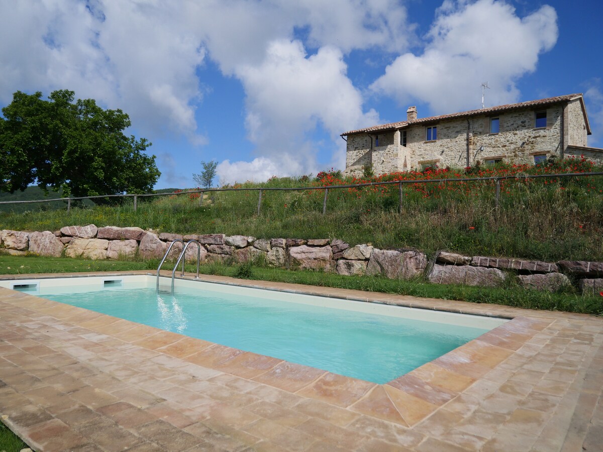 Stilig umbriansk gårdshus i fantastisk landskap
