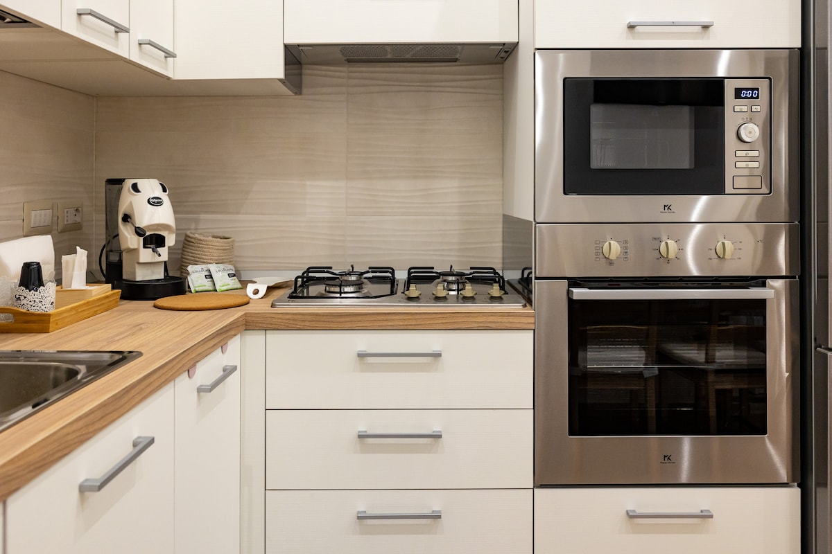 *med bagasjeoppbevaring* Luksuriøs og lys leilighet, perfekt for fire personer, som ligger i fjerde etasje (med heis) i den prestisjetunge Palazzo Imbriani 33. Utstyrt med alle moderne bekvemmeligheter, er det ideelle valget for dem som søker en sentral beliggenhet i Napoli. Leiligheten ligger på Piazza Municipio, bare en kort spasertur fra det historiske senteret, vannkanten og i nærheten av havnen. Nyt tidlig innsjekking uten vert eller sen utsjekking (ved forespørsel uten ekstra kostnader) med smartlås døgnet rundt.