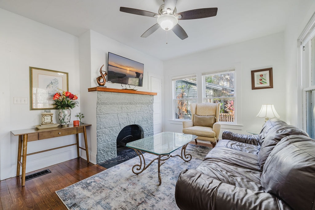 Kom og slapp av i et stykke historie. Vår historiske bungalow fra 1920-tallet tilbyr nettopp det! Vi har pusset opp dette hjemmet for å tilby alle bekvemmelighetene du forventer, samtidig som vi sikrer at den unike karakteren skinner gjennom. Du vil elske den førsteklasses beliggenheten vår, bare noen kvartaler fra det livlige sentrum og den vakre Stetson University-campusen. Start dagen på verandaen foran, perfekt for å nyte nabolaget, eller finn et fredelig tilfluktssted på verandaen bak med utsikt over den inngjerdede hagen – et fristed for barn.