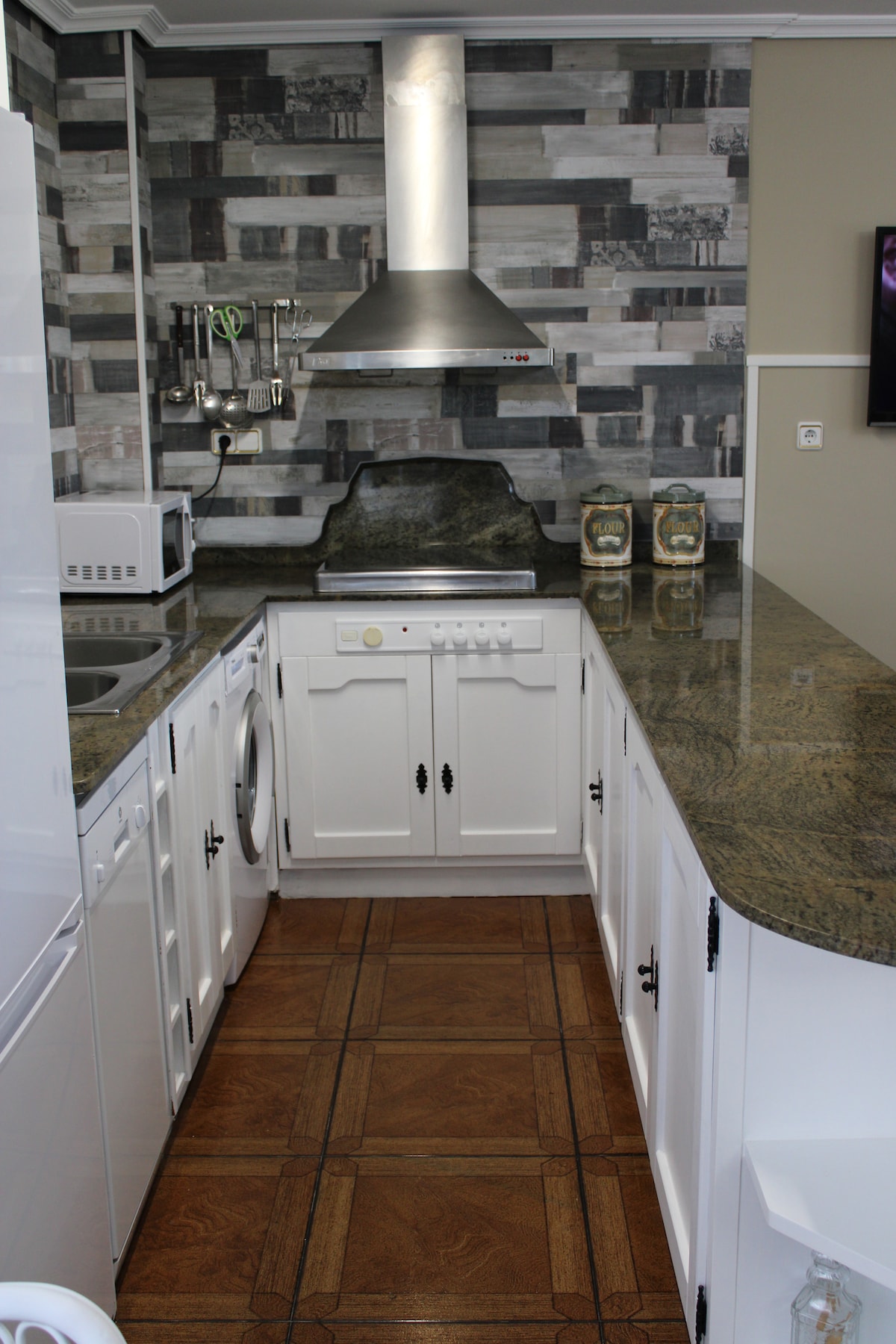 Rekkehus i Castanedo (Cantabria) Åpen planløsning i første etasje med fullt utstyrt åpen kjøkken, stue med TV, peis og sovesofa, spisestue med stort bord og benker, komplett toalett. Øverste etasje med dobbeltrom, pluss 1 rom med 2 senger, pluss 1 rom med enkeltseng og 2 køyesenger. Komplett bad. Gårdsplass i front med parkering for 2 biler. 200 m2 hage på baksiden, med grill og frukttrær.