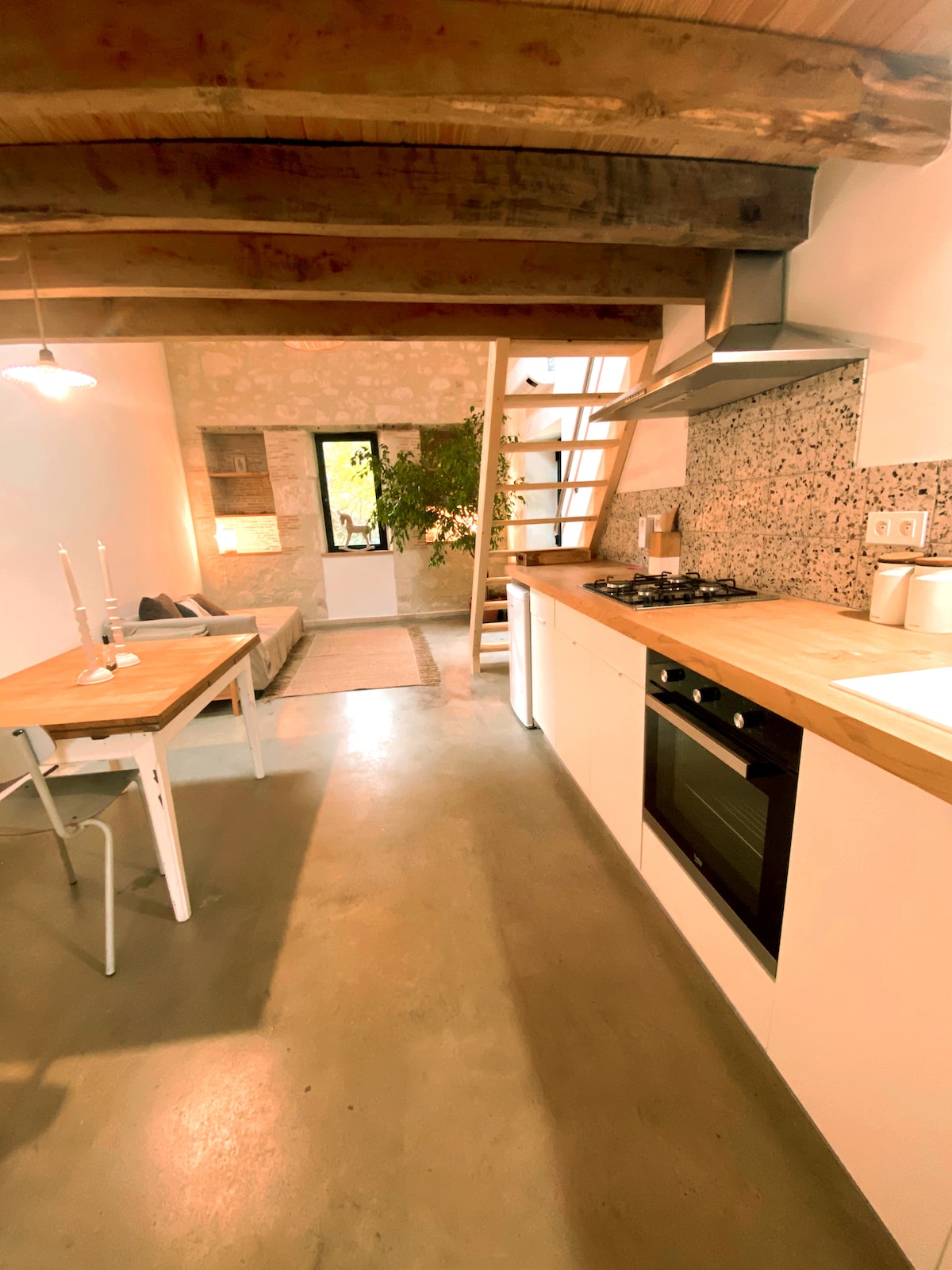 Helt nytt overnattingssted på 40 m², med klimaanlegg og wifi, som ligger i høydene i landsbyen Sainte-Croix-du-Mont. Den omfatter en stue (åpent kjøkken, sittegruppe), et soverom med skap/garderobe og en 160 cm seng som kan deles i to 80 cm senger, og ett bad/WC med skap (støvsuger, kost osv.). 1 fullt utstyrt kjøkkenkrok Ett oppholdsrom med én sovesofa med uttrekkbar seng for én eller to personer, TV og USB-port. Én terrasse i tre, hage med utemøbler. 1 parkeringsplass