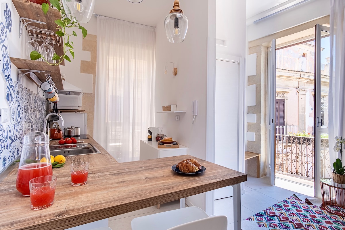 Luksuriøs leilighet i hjertet av Ortigia, renovert, aircondition og komplett med alle bekvemmeligheter. Balkonger med utsikt over havet. Komplett kjøkken, smart-TV, trådløst nettverk, vaskemaskin. Spiaggetta Calarossa nedenfor huset og Solarium Fortevigliena ligger bare to minutter unna! Veldig nærme restauranter og de viktigste historiske stedene i Ortigia. Naboleiligheten kan leies samtidig for grupper/familier, opptil totalt 9 personer. BARNESENG VED FORESPØRSEL MOT ET GEBYR. LES MERKNADENE NØYE