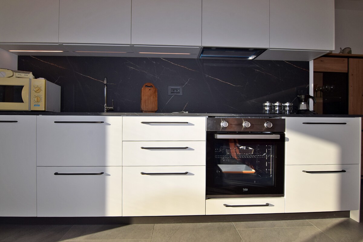 Huset ligger i en svært rolig drømmeplassering i frukthagene i Etschtal. Leiligheten ligger i første etasjen, er 120 kvm stor og har plass til opptil 6 gjester. Bolzano ligger 10 minutter unna, Merano 20 minutter unna, og ski- og turområdene i Dolomittene ligger 40 minutter unna. Det er sykkelstier rundt hjørnet og turmuligheter foran huset. Gjestene har tilgang til 2 parkeringsplasser i den lukkede gårdsplassen, hver ekstra parkeringsplass koster 10 €/dag