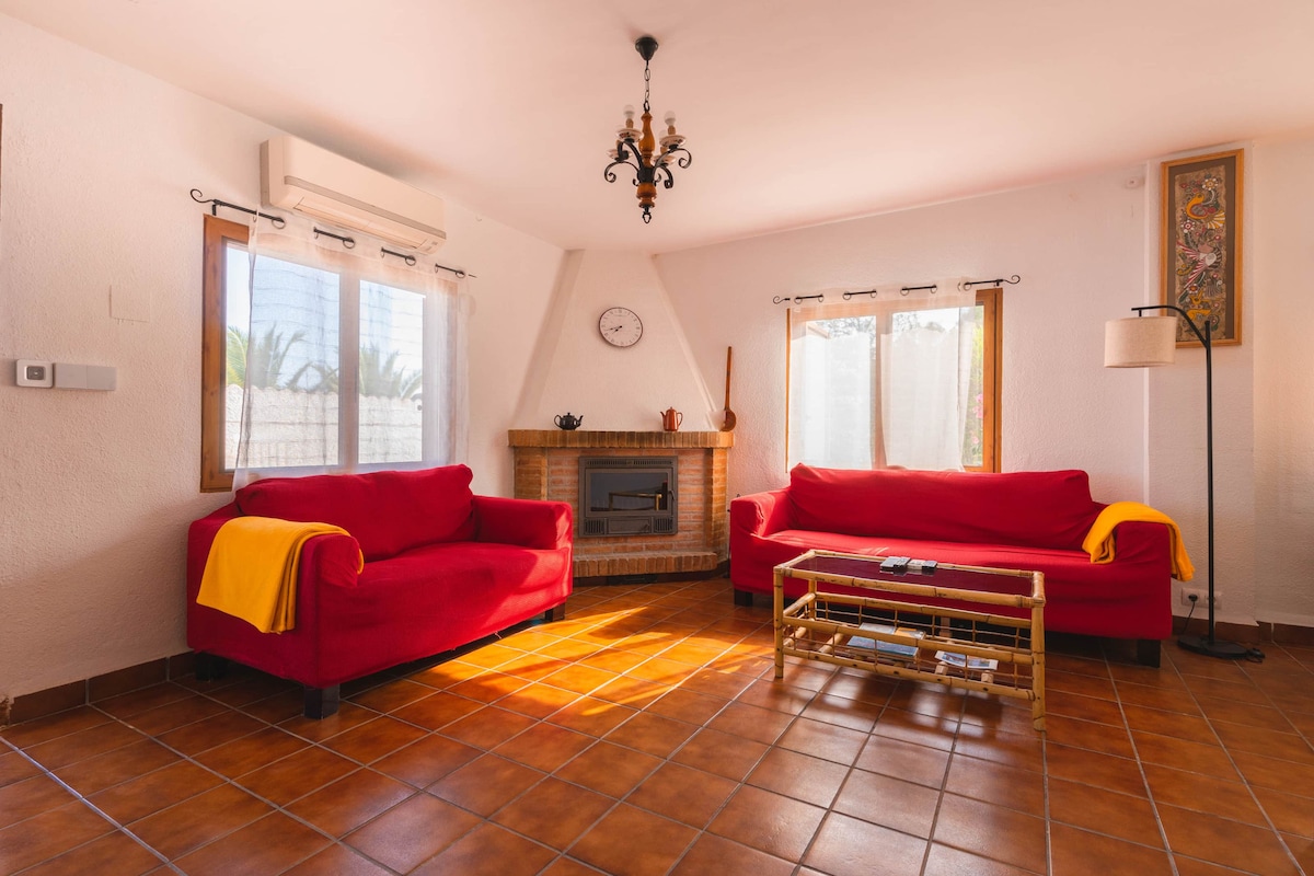 Vakkert og friskt rekkehus i et rolig Urbanization Tower Bellver ca. 950 meter fra stranden for familieferier. Restaurant ca. 250 meter. Supermercados Lidl og Mercadona ligger ca. 2 km unna. 12 minutter med bil til Aquarama vannpark. Og ca. ti minutter til Marina d'Or vannpark. Dekket terrasse på 25 m2 og hagen på 150 m2. Med et basseng på bakken som er mer enn 4 m langt. Gratis parkering i nærheten.