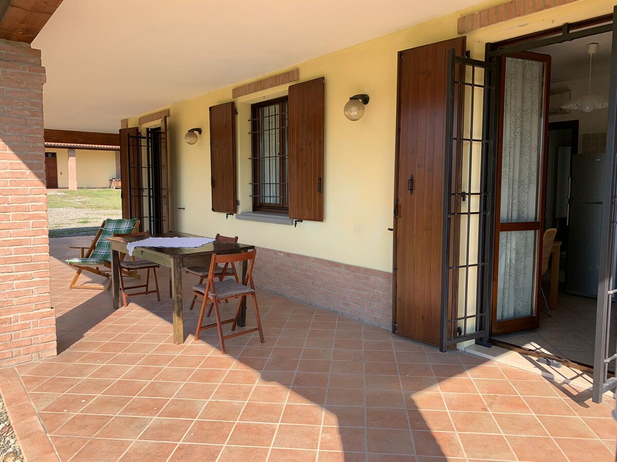Suite-leilighet i privat villa på landet, park, parkering. Bologna 25 km, Modena 20 km. 1. etasje, månedlig leie (overgangskontrakt), forretningsreiser og studier. Personvern og uavhengighet Åpent område: rasjonell inndeling av stuen og soveområdet gjennom skreddersydde håndverksmøbler Fullt utstyrt kjøkken. Bad med dusj Kontrollpanel TV Forbruk Håndklær Sengetøy Baderomssett Rengjøring. Parkering uten ekstra kostnad Trådløst nettverk. Selvbetjent vaskeri 500 meter fra hjemmet.