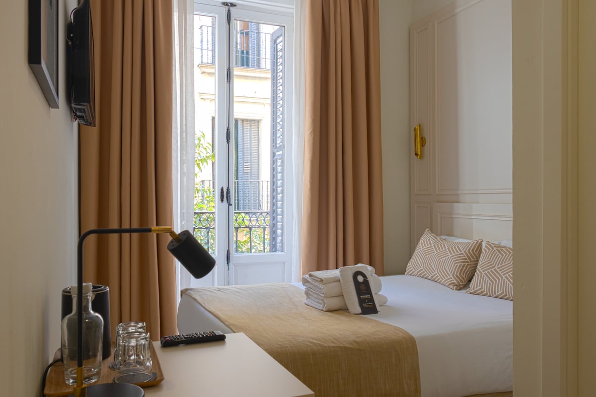 Koselige, lyse og komfortable rom med store vinduer med utsikt over gaten. Disse rommene er utstyrt med flatskjerm-TV, skrivebord, garderobe, utvalgte møbler, høy profil ekstra komfortabel madrass og romslig regndusj. 19 m2 rom med en kingsize-seng (1,80m) eller to enkeltsenger (0,90m).