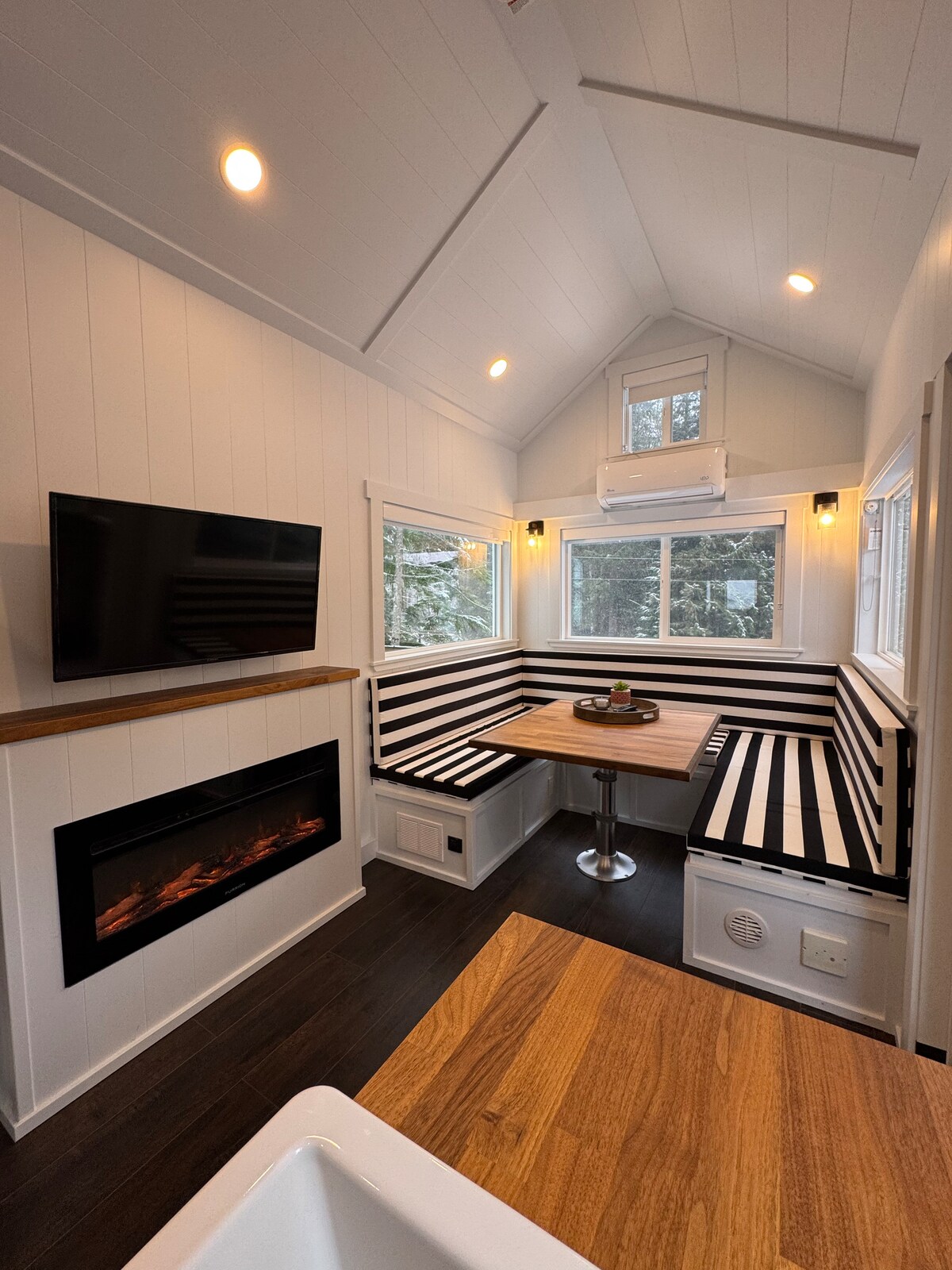 Dette (ikke så lille) minihuset med episk utsikt er virkelig et sted som nærer sjelen. Fra den store utstrekningen av sørvendte vinduer kan du nyte utsikten over Kooteney-sjøen og deretter nyte den overbygde private terrassen med et utendørs badekar! Det har alle fasilitetene som gjør det til et perfekt tilfluktssted, inkludert et Bose-lydanlegg, filmprojektor og yogamatte. Fra en komfortabel seng til kunstnerisk innredning og et fullt utstyrt kjøkken, vil du garantert ønske å bli for alltid.