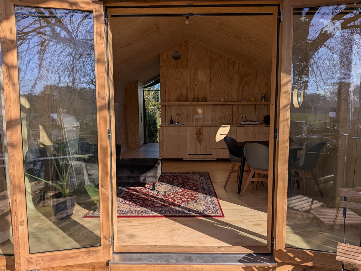 Luksus, beliggenhet kun for én person. Et minihus på 28 m2, fullt utstyrt, realisert innenfor veggene i retreat-huset Transitium ZeeVELD. Med egen inngangsdør og vakker uhindret utsikt over enger og skog. Havet, stranden og alternativene for noe å spise eller drikke ligger innenfor gangavstand. Her trenger du ikke sette deg inn i bilen på flere dager. Se også under "Annen viktig informasjon".