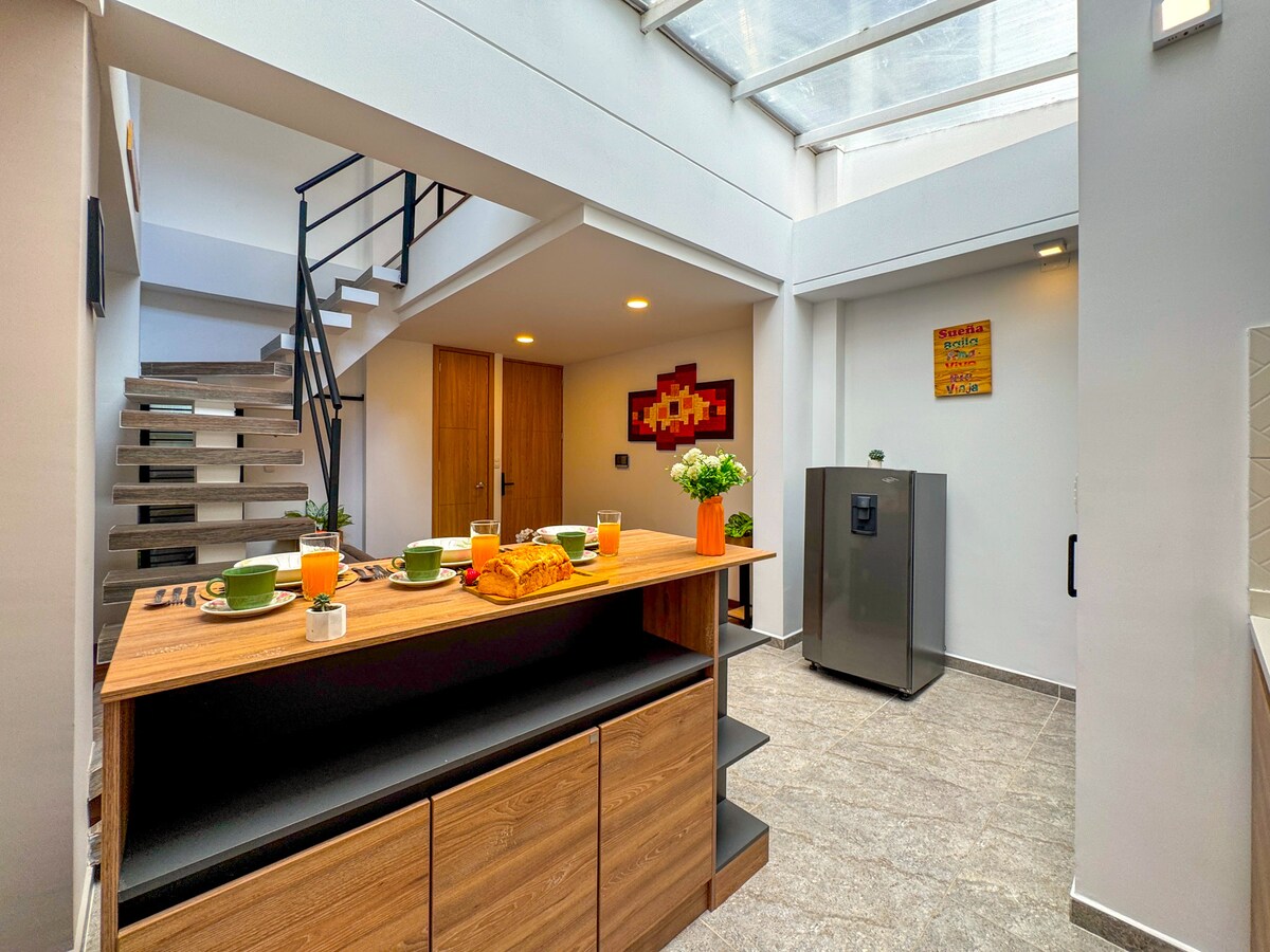 Enjoy comfort and modern style in this duplex studio! The first floor features a spacious living area, dining space, open kitchen, sofa bed, laundry area, and half bath. Upstairs, the master bedroom includes a double bed, trundle bed, walk-in closet, and private bathroom. We offer fast Wi-Fi, Smart TV, and electronic security for your peace of mind. Perfect for a comfortable and relaxing stay. Book now for a unique experience!
