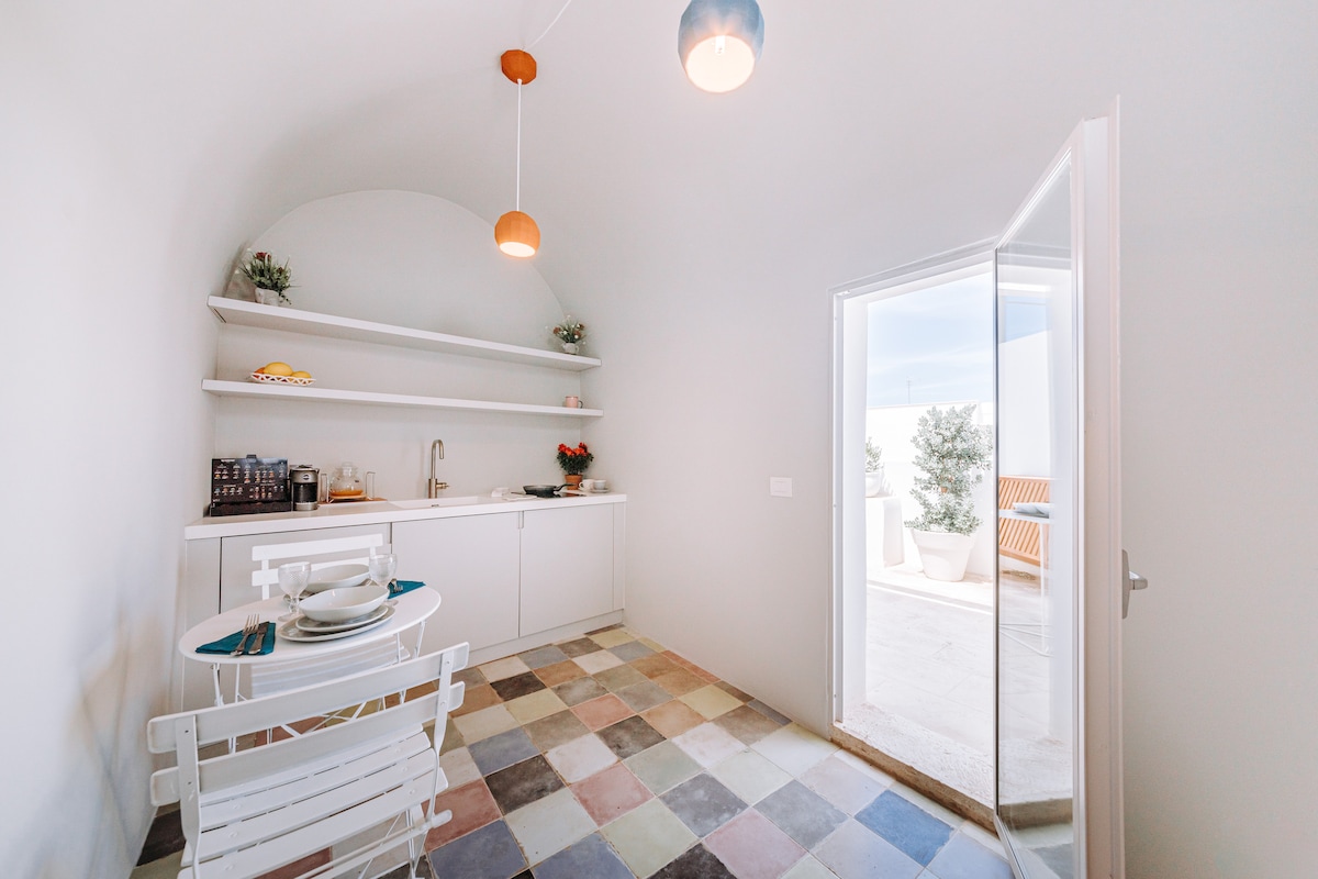 Elegant og moderne leilighet i to etasjer med en privat panoramaterrasse og uavhengig inngang, som ligger i hjertet av Polignano a Mare. – Gratis privat parkering, bare 900 meter fra leiligheten. – 15 minutters gange fra Polignano togstasjon. – I nærheten av boligen ligger den berømte restauranten Grotta Palazzese og Lama Monachile, som er lett tilgjengelig til fots. – Plassert i et rolig og godt betjent område, med restauranter og kafeer i nærheten.