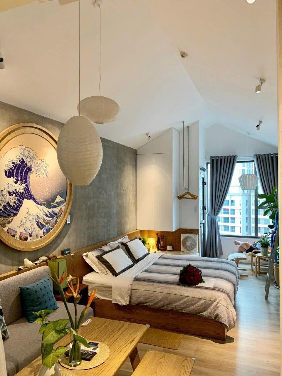 Studioet vårt er perfekt til neste opphold i Saigon! Det tropiske interiøret er inspirert av den berømte arkitekturen til Hoi An. Den ligger i sentrum av Saigon, ti minutters gange fra backpackerområdet. Nyt himmelsk utsikt over sentrum av Saigon, spesielt om natten. Inkluderer fullt kjøkken og bad med regndusj og badekar! Fasilitetene inkluderer: o kingsize-seng av hotellkvalitet o TV med Netflix o Marshall Bluetooth-høyttaler o fullt utstyrt kaffebar o vaskemaskin med frontlaster o toalett med bidé