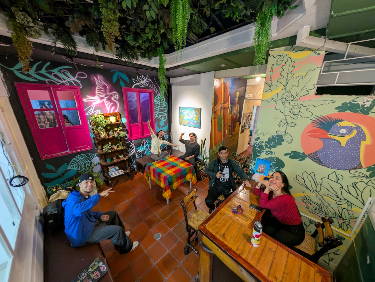 Nyt enkelheten i dette rolige og sentrale overnattingsstedet. Den har mye naturlig belysning, dobbeltseng, garderobeskap i tre, smart-TV, eget bad med varmt vann, kjøkken med nødvendig utstyr for måltidene dine og Wi-Fi. Studioleiligheten er en del av et restaurert hus i den beste kolonistilen. Strategisk beliggenhet for enhver aktivitet, ligger i sentrum av byen, bare 3 kvartaler fra Plaza de Nariño. Vi aksepterer kjæledyr mot et tilleggsgebyr.