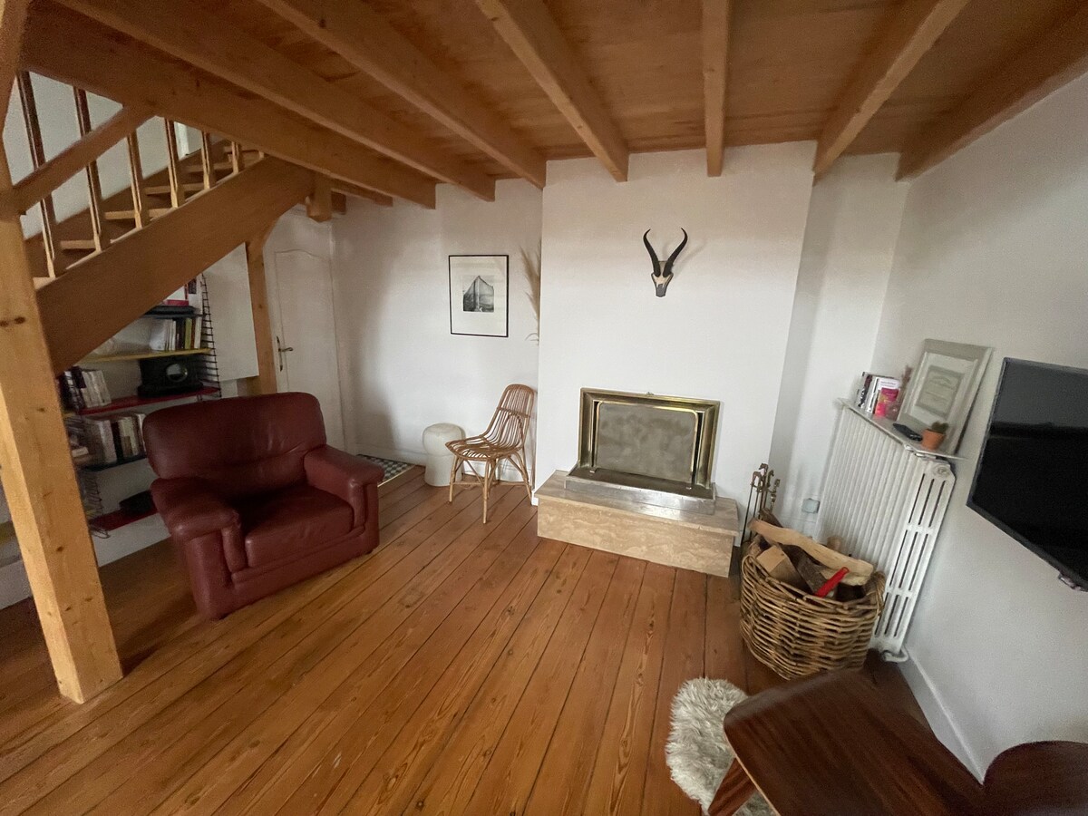 Sett ned bagasjen din i denne nydelige leiligheten i et tidligere privat herskapshus. Bare tre minutters gange fra togstasjonen og nær byens historiske sentrum. Leiligheten ligger i første etasje og er fullt møblert og utstyrt, og veldig lys takket være den store balkongen som går rundt. Soverommet ligger i mesaninen, med en takhøyde på 1,85 meter. En raffinert blanding av moderne komfort og gammel sjarm, med Versailles parkettgulv og fantastiske taklister.