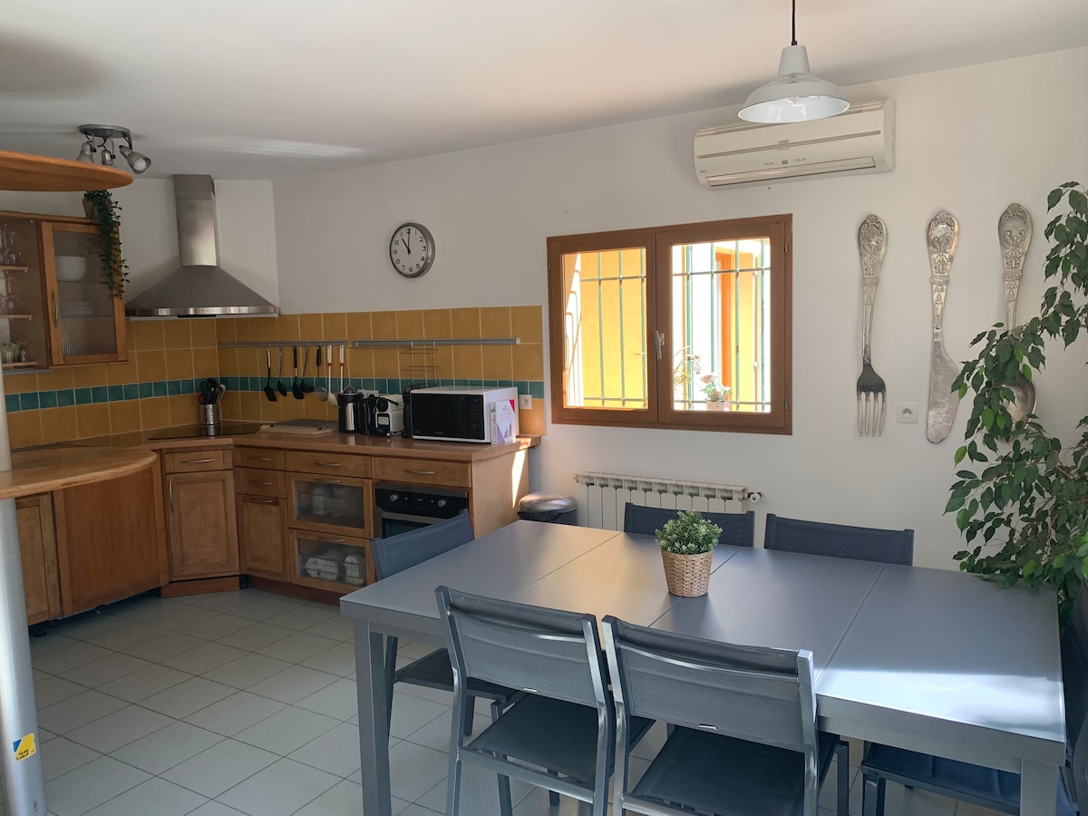 "La Maison aux Oliviers" er en liten sjarmerende gård på 90m2, med aircondition, uavhengig og ligger på en gammel olivenlund, i en rolig anlagt hage med et vakkert oppvarmet og sikkert privat basseng. Den store markisen gir mulighet til å oppholde seg ute, beskyttet mot sol og vind (mistral). I nærheten av det historiske sentrum, det lokale markedet og butikkene (til fots), er det perfekt utstyrt for fjernarbeid (høyhastighetsfiber)