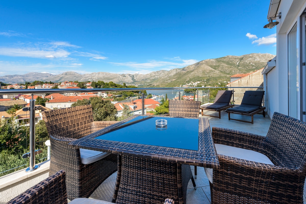 Velkommen til vår splitter nye toppleilighet, bare en kort 15-20 minutters kjøretur fra Dubrovnik lufthavn. Hvis du søker en rolig flukt med fantastisk utsikt over Cavtat Bay, er denne romslige leiligheten med tre soverom ditt perfekte valg. Vekk fra travle Dubrovnik, tilbyr toppleiligheten vår fred og ro, samtidig som den er praktisk i nærheten av det pulserende hjertet av Cavtat.