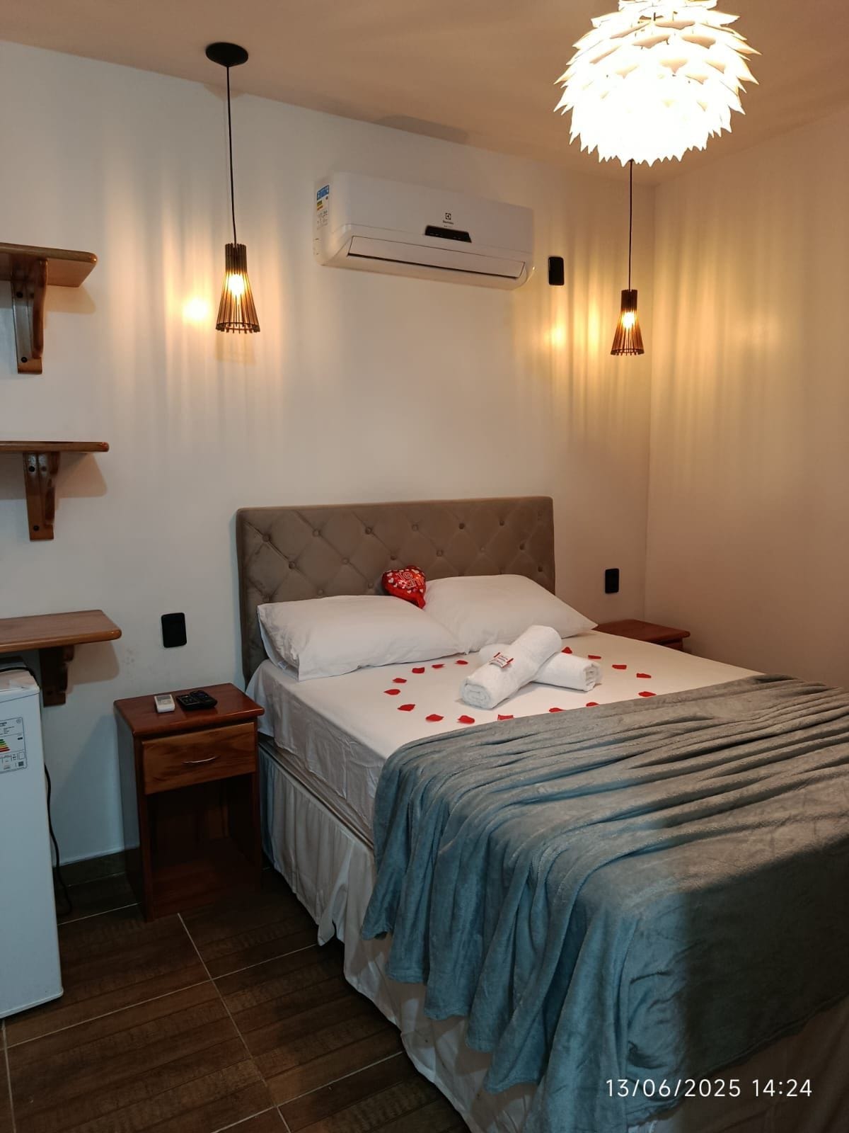 Rom 2 i Pousada Família Ligger i turistområdet i Juazeiro-CE I nærheten av Praça Pe. Cícero, shopping, Horto, museum, sentrum, helsesentre, restauranter, bakerier. En virkelig PRIVILEGERT beliggenhet! Den beste kostnaden i byen! (FAMILIEATMOSFÆRE) ❄️- Klimaanlegg - Kjøleskap - Håndkle – én dobbeltseng – én enkeltseng plass til en hengekøye og en madrass ❗(bad ved siden av, delt med et annet rom)❗ Privat plass i vertshuset. Vi er klare til å hjelpe deg!
