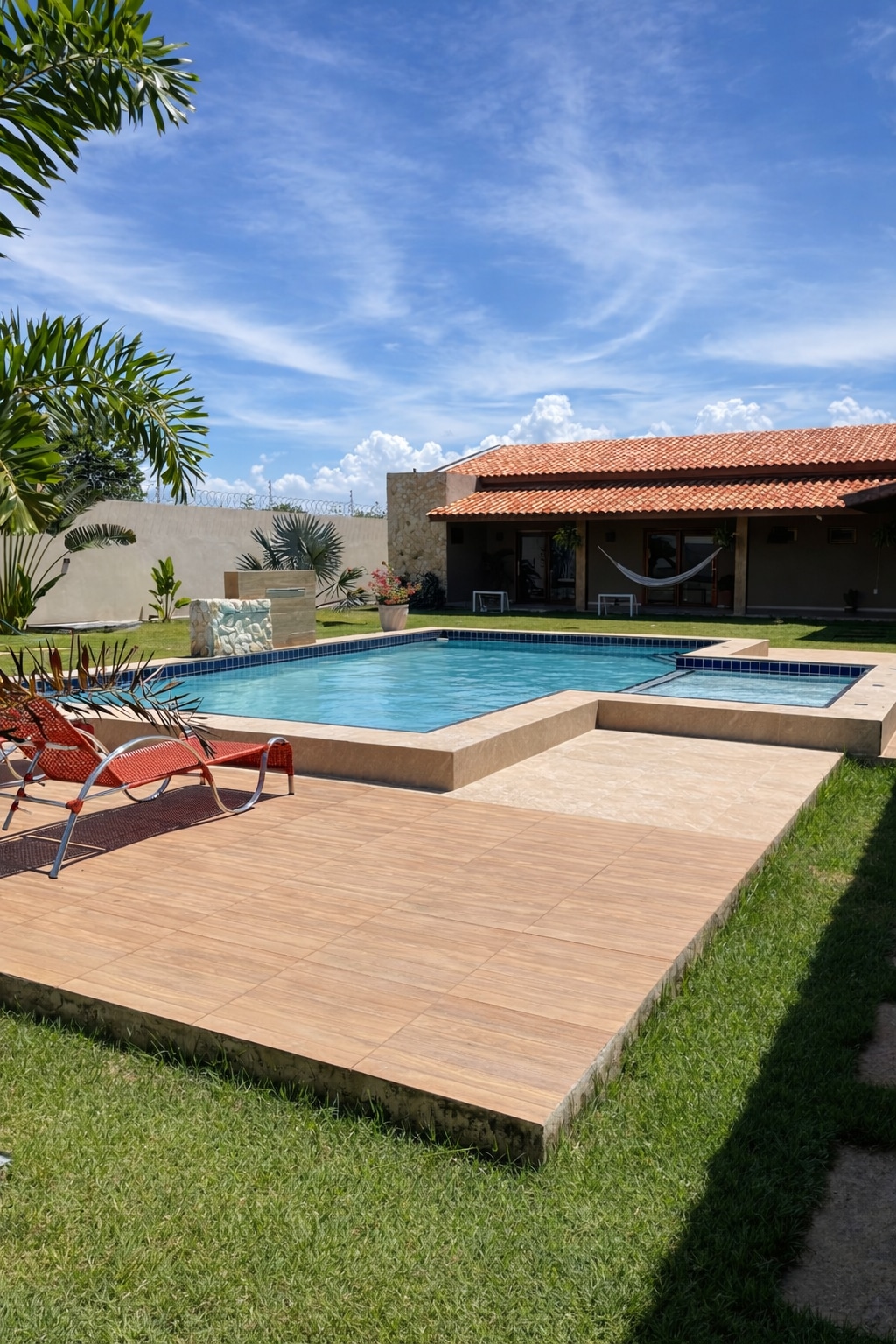 Localizada estrategicamente próximo ao centro de Paracuru, a Villa Wiktor é uma casa de alto padrão que oferece uma estadia excepcional. Seu belo jardim e área gourmet são ideais para momentos comemorativos, enquanto a piscina com tratamento à base de sal promove relaxamento. No interior, quatro quartos con ar, três banheiros e uma cozinha completa garantem conforto e praticidade.