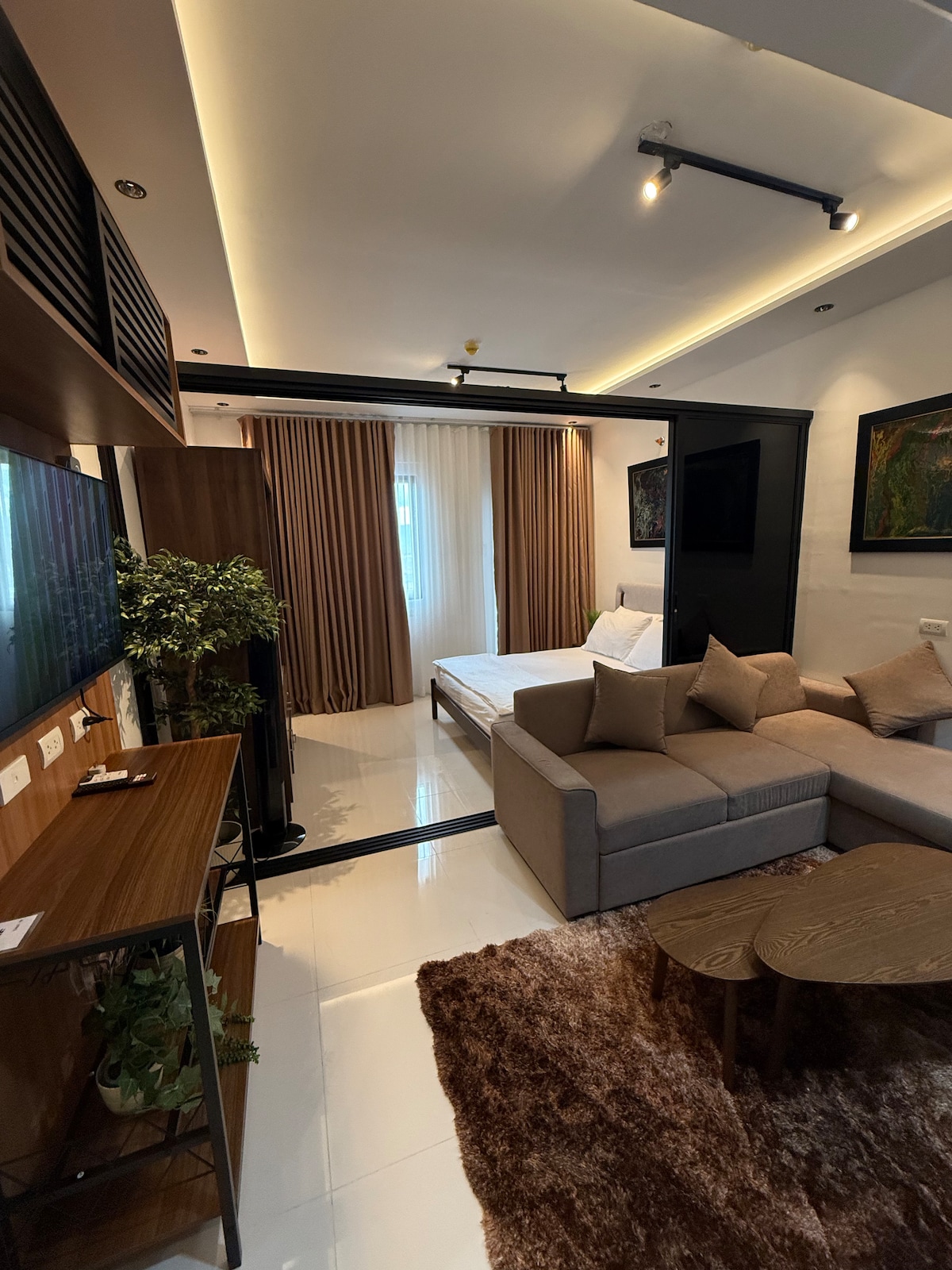 Experience high-end living in this prime 22nd-floor luxury studio at Park Avenue 38, IT Park, offering elegant city and bay views. Good for four people. Enjoy your private cinema projector, plush sofa bed, indoor plants, and germ-killing AC. Features hot & cold shower, full cooking facilities, and daily housekeeping. 7-Eleven is at the entrance, surrounded by the best 24/7 coffee shops and upscale restaurants.