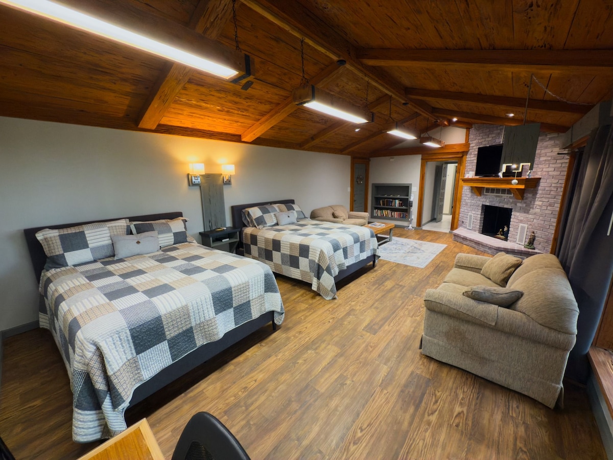 Hytta er koselig og komfortabel. Det er et 980 kvadratmeter stort prefab-hjem. Det har blitt renovert, nye laminatgulv. Fellesområdet og kjøkkenet er åpne og romslige. Ny 50 tommers smart-TV og mindre soverom Roku-TV. Planløsning med delt soverom. Hovedsoverom og bad i den ene enden. Mindre soverom ved siden av badet i gangen. Sjampo og dusjsåpe. Kjøkkenet er fullt utstyrt for matlaging. Krydder og olje, kaffemaskin, K-kopper og 12-koppers kaffekanne, vask/tørk. Inngjerdet hage, kjæledyrvennlig. Barnestol og lekeplass.