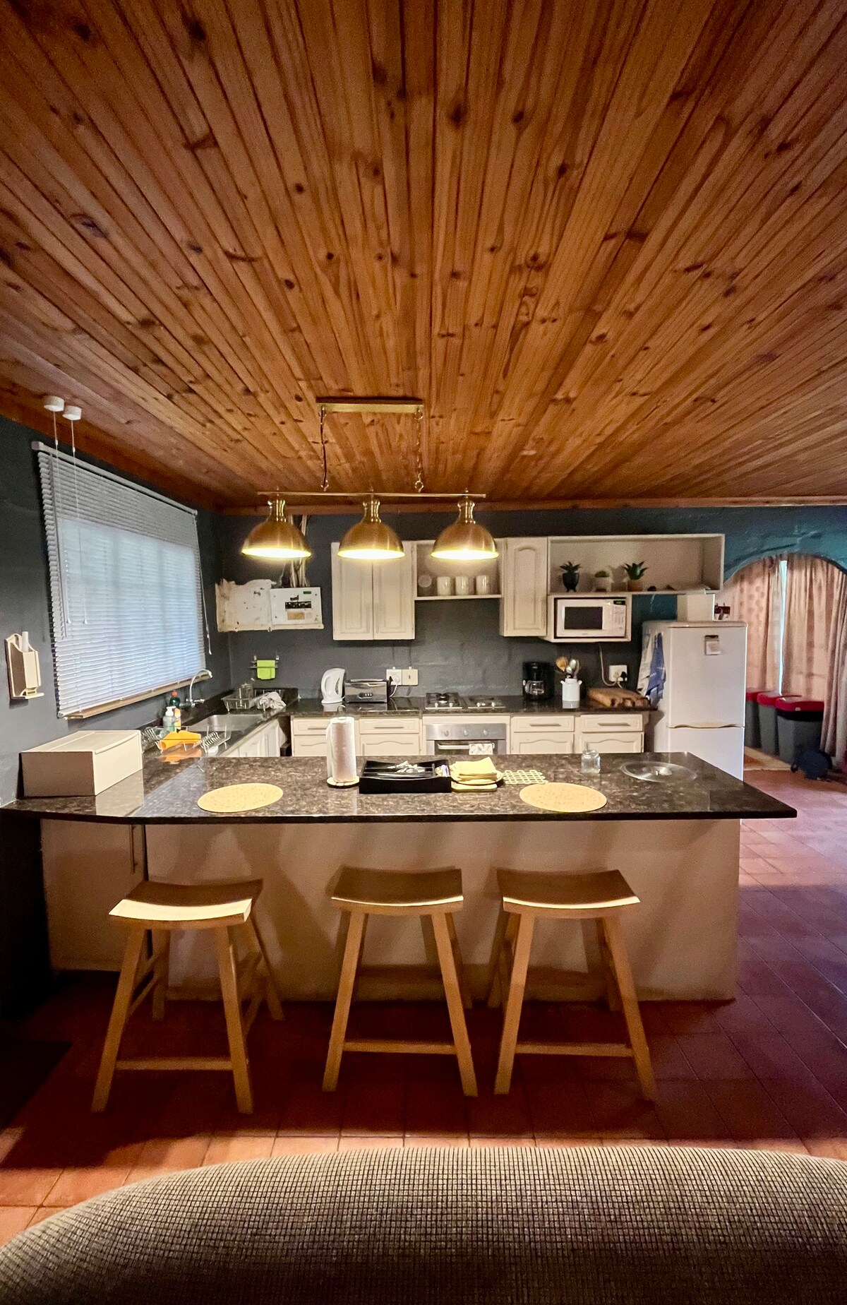 Hytta ligger i hagen ved siden av familiehjemmet vårt med et sikkerhetsgjerde, på en saue- og storfeoppdrettsgård. Stedet er godt dekorert, romslig, pent og rent. Den får fantastisk ettermiddagssol, noe som gjør den lys og luftig. Hytta har alle nødvendige fasiliteter for et veldig komfortabelt opphold. Vi ligger utenfor Swartberg, halvveis mellom Underberg og Kokstad. Den ligger praktisk til rett ved R617, noe som gjør den lett tilgjengelig med minimalt med grusvei. Prisene gjelder per person.