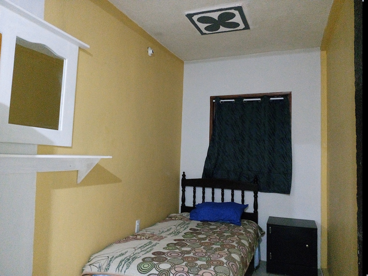 Slapp av og finn deg til rette i dette rommet laget for å gi deg et luksuriøst opphold med alle nødvendige fasiliteter for din komfort, og samtidig nyte den rolige og avslappende hagen som eiendommen har, og alt dette i byen, plassert i en privat gate med gjerde og overvåkingskameraer, noen kvartaler fra sentrum og alléen, vi kan sjekke inn oppholdet ditt uten problemer, det har aircondition og kingsize-seng samt en sovesofa