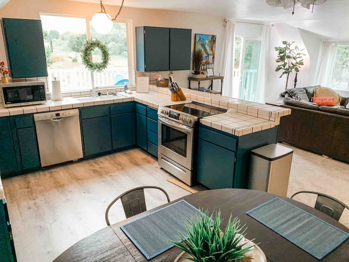Country Charm! Se på solnedgangen over nærliggende vingårder eller den vakre nattehimmelen. Dyrevennlig sted med to soverom, fullt utstyrt kjøkken og din egen private terrasse med utegrill. Vi ligger ca. ti minutter øst for byen, i nærheten av Vina Robles Amphitheater. For de av dere som er interessert i å gjøre en forskjell, drives hele stedet av Solar. Det er en Tesla/elbillader på eiendommen som du er velkommen til å bruke når som helst under oppholdet.